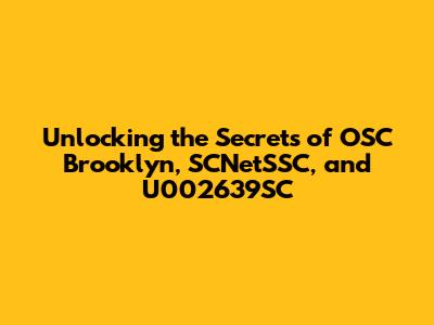 Unlocking The Secrets Of OSC Brooklyn, SCNetSSC, And U002639SC