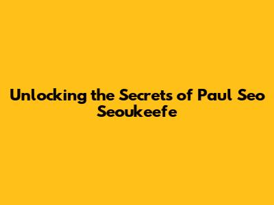 What's up, guys! Today, we're diving deep into the intriguing world of Paul Seo Seoukeefe. You might have heard the name, or maybe you're just stumbling upon it, but either way, get ready to be fascinated. We're going to peel back the layers and explore what makes Paul Seo Seoukeefe such a captivating subject. Whether you're here for the groundbreaking work, the unique perspective, or just plain curiosity, stick around because we've got a lot to unpack.