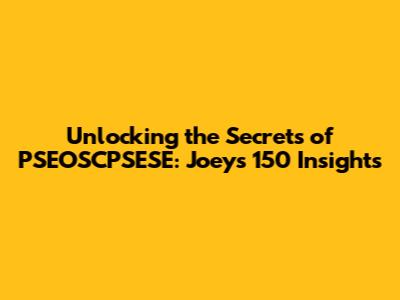 Hey guys! Ever heard of PSEOSCPSESE? If you're scratching your head, you're not alone. It's a bit of a mouthful, right? But trust me, understanding this topic, especially with the insights from Joey and his 150 points, can be super valuable. We're diving deep into what PSEOSCPSESE is all about and how Joey's perspective sheds light on this subject. Let's get started and decode this thing together! So, what exactly is PSEOSCPSESE? It's like a complex puzzle with many pieces. Think of it as a specialized area or concept. To fully understand it, we need to break it down. Joey, our expert, has spent considerable time analyzing it and has come up with 150 key points, which we'll explore. This approach allows us to gain a better grasp of the topic.