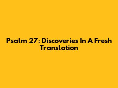 Psalm 27: Discoveries In A Fresh Translation