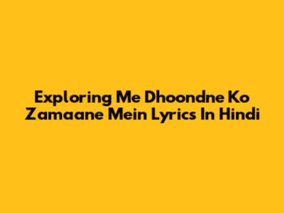 Exploring 'Me Dhoondne Ko Zamaane Mein' Lyrics In Hindi