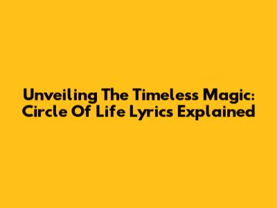 Unveiling The Timeless Magic: Circle Of Life Lyrics Explained
