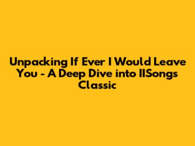Hey music lovers! Ever found yourself utterly captivated by a song, its melody weaving a spell around you, its lyrics stirring something deep within? Well, today, we're diving headfirst into that feeling with a spotlight on a truly iconic track: "If Ever I Would Leave You" by IISong. This isn't just a song, guys; it's an experience, a journey through the complexities of love, commitment, and the ties that bind. We'll be exploring the lyrics, the meaning, the chords, and everything in between to give you a comprehensive understanding of this timeless classic. Get ready to have your heartstrings pulled and your musical knowledge expanded! Let's get started, shall we?