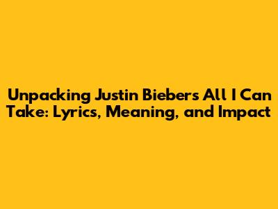 Hey guys, let's dive into the world of Justin Bieber's music, specifically focusing on the track, "All I Can Take." This song is a deep cut that resonates with a lot of fans, and we're going to break down its lyrics, meaning, and overall impact. Get ready to explore the emotional landscape of this track, understand its place within Justin's discography, and maybe even find a new appreciation for it. We'll be looking at the song's themes, analyzing its musical elements, and even touching upon its cultural significance. So, buckle up; this is going to be a fun journey through the heart of one of Justin Bieber's most introspective songs.