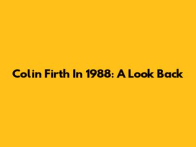 Colin Firth In 1988: A Look Back