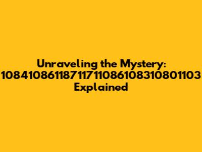 Hey everyone, let's dive into something a little different today! We're going to crack the code on 10841086118711711086108310801103. Now, that string of numbers might look like a jumble, but trust me, there's a fascinating story behind it. Think of it like a secret message waiting to be unlocked. This isn't just about stringing together a bunch of numbers; it's about understanding what they represent. We're going to explore how this sequence works and what it leads to. This numerical sequence may seem random, but like a complex puzzle, each digit plays a crucial role. We'll examine the sequence's origins, explore its meaning, and discuss its potential uses. Consider this a journey into a world where numbers hold secrets. We'll be using different perspectives, from tech to everyday applications.
