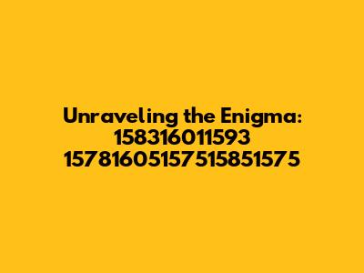 Hey everyone, let's dive into something a bit mysterious! We're talking about the numerical sequence 158316011593 15781605157515851575. It looks like a bunch of random numbers, right? But what if I told you there's a secret code hidden within? A cipher waiting to be cracked? That's what we're going to explore today. We'll start by taking a close look at this numerical puzzle, and then we'll try to understand what it might represent. This is an exciting journey into the realm of cryptography and number theory, and it's a great exercise for our brains. By the end of this article, you'll have a better understanding of how these seemingly random numbers might hold a specific meaning, and you'll be equipped with the knowledge to potentially decipher similar codes in the future. So, fasten your seatbelts, grab your codebreaking tools, and get ready for a fascinating exploration. This is going to be fun, and who knows, maybe we'll discover something amazing! Decoding such a sequence often involves several approaches, including looking for patterns, comparing the sequence to known codes, or using digital tools to process the data. This particular numerical string might be an encrypted message, an identification number, a timestamp, or part of a larger dataset. Each number could represent a letter, a word, or a more complex symbol. The possibilities are vast, and the challenge lies in identifying the correct deciphering method. Our goal is to dissect this numeric sequence, analyze it, and understand its hidden meaning. It's like embarking on a treasure hunt, where the treasure is the knowledge itself. Let's get started!
