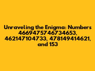 Hey guys! Ever stumble upon a sequence of numbers that just seems to hang in the air, begging to be understood? Well, today, we're diving headfirst into a numerical puzzle: 4669475746734653, 462147104733, 478149414621, and 153. It might look like gibberish at first glance, but trust me, there's always a story behind the numbers. This article is your guide to deciphering what these digits could possibly represent, breaking down their potential meanings, and exploring different angles to unveil their significance. Let's get started, shall we?