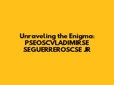 Hey everyone, let's dive headfirst into the fascinating, and frankly, quite intriguing subject of PSEOSCVLADIMIRSE SEGUERREROSCSE JR. If you've stumbled upon this name, or if it's been buzzing around your circles, you're probably wondering, "What exactly is this all about?" Well, buckle up, because we're about to embark on a deep dive. I'll break down all the nuances, clarify any confusion, and aim to give you a comprehensive understanding. The goal here is simple: to transform this complex topic into something easy to digest. We'll explore its different facets, and hopefully, by the end of this journey, you’ll not only know what it is, but also why it matters. This name might seem like a jumble of letters, but trust me, there's a world of information hidden within. So, let’s get started. Get ready to have your questions answered, and maybe even discover something new and exciting! This exploration will unravel the layers of PSEOSCVLADIMIRSE SEGUERREROSCSE JR and provide a clearer picture. Let’s make the learning process fun and engaging, so that by the end you feel well-informed and confident in your knowledge.