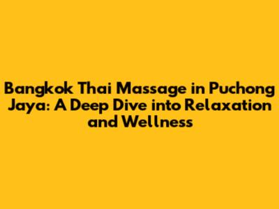 Hey guys! Ever felt like your body is a tangled mess of knots and stress? Well, if you're in the Puchong Jaya area, you're in luck! Bangkok Thai massage in Puchong Jaya is your ticket to a world of relaxation, rejuvenation, and overall well-being. Today, we're diving deep into the world of this ancient healing art, exploring its benefits, what to expect during a session, and why it's becoming a go-to choice for those seeking a natural path to wellness. So, buckle up, and let's unravel the secrets of Bangkok Thai massage right here in Puchong Jaya.