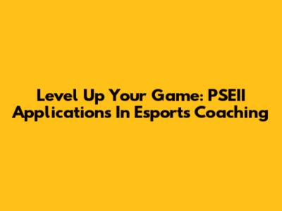 Level Up Your Game: PSEII Applications In Esports Coaching