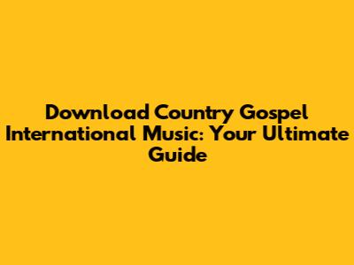 Download Country Gospel International Music: Your Ultimate Guide