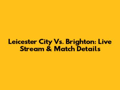 Leicester City Vs. Brighton: Live Stream & Match Details