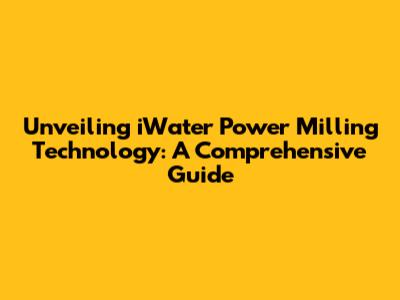 Hey guys! Let's dive deep into the fascinating world of iWater Power Milling Technology. This is not your grandpa's milling process, we're talking about a cutting-edge approach that's revolutionizing industries. We'll explore everything from its core principles to the awesome advantages it offers and the diverse applications where it's making a real impact. Get ready to be amazed!