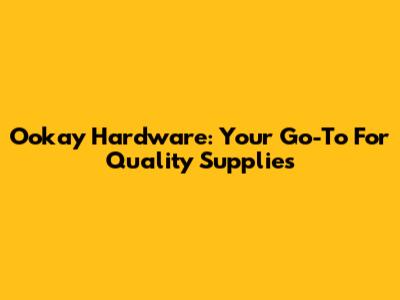 Ookay Hardware: Your Go-To For Quality Supplies