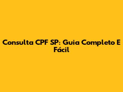 Consulta CPF SP: Guia Completo E Fácil