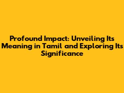 Decoding "Profound Impact" in Tamil: Key Translations and Nuances