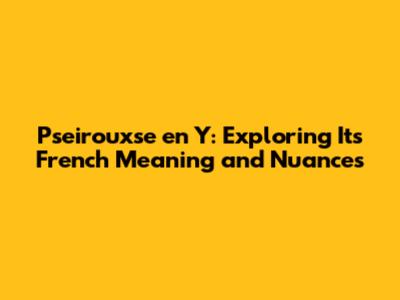 Alright guys, let's dive into the fascinating world of French language and explore a phrase that might have you scratching your head: "pseirouxse en y." This seemingly cryptic expression can be a bit of a puzzle, but fear not! We're going to break it down, understand its meaning, and see how it's used in everyday French. Think of this as your friendly guide to demystifying this phrase. It’s like, imagine you stumble upon this in a novel, a movie, or maybe even a conversation with a French speaker – you'd want to know what's going on, right? So, let's get started and unravel the mystery of "pseirouxse en y." It’s not a super common phrase, so you might not encounter it every day. But when you do, understanding it can be the key to unlocking a deeper level of comprehension and appreciation for the French language. We will explore it comprehensively, so you can walk away feeling confident that you truly grasp what this term actually means and when you can use it, in a similar context.