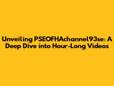 Hey everyone! Ever stumbled upon something online that just grabs your attention and refuses to let go? Well, that's kind of how I felt when I first encountered PSEOFHAchannel93se. This channel, with its intriguing name and the promise of hour-long videos, had me hooked. So, I figured, why not dive in and share my experience with you all? This article is all about my journey into the world of PSEOFHAchannel93se, exploring what makes it tick, and whether it's worth your time.