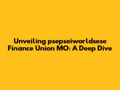 Let's dive deep into the intriguing world of psepseiworldsese Finance Union MO. This isn't your everyday topic, so buckle up as we unpack what it is, why it matters, and how it might affect you. We will explore the various facets of this financial entity, its origins, objectives, operational mechanisms, and potential impacts on the broader financial landscape. Whether you're a seasoned finance professional or just someone curious about the intricacies of global finance, this comprehensive guide aims to provide a clear and insightful understanding of psepseiworldsese Finance Union MO. It is essential to navigate the complexities of modern finance with informed awareness, and understanding unique entities like this is a crucial step in that direction. Our journey will encompass a detailed examination of its structure, governance, investment strategies, and risk management practices. Furthermore, we'll analyze its performance indicators, regulatory compliance, and future outlook in light of evolving economic conditions and geopolitical dynamics. The goal is to equip you with the knowledge necessary to critically assess its role and significance in the global financial system.