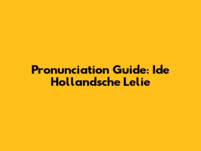Pronunciation Guide: Ide Hollandsche Lelie