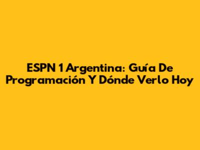 ESPN 1 Argentina: Guía De Programación Y Dónde Verlo Hoy