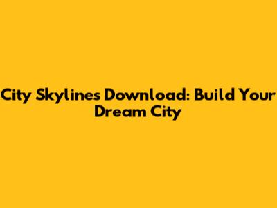 City Skylines Download: Build Your Dream City