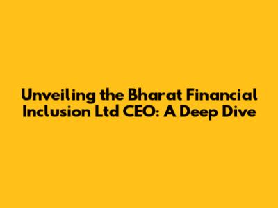 The identity of the Bharat Financial Inclusion Ltd CEO is a crucial piece of information for anyone interested in the company. Although the specific individual holding the position of CEO can change over time, their role remains consistently vital. The CEO's responsibilities include everything from setting the company's vision and goals to managing its day-to-day operations and ensuring its long-term sustainability.