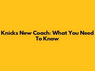 Knicks' New Coach: What You Need To Know