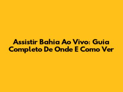 Assistir Bahia Ao Vivo: Guia Completo De Onde E Como Ver