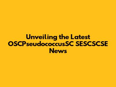 The Latest Developments in OSCPseudococcusSC SESCSCSE