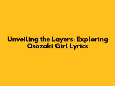 Hey music lovers! Ever found yourself completely captivated by a song? That's how I feel about "Osozaki Girl." The lyrics are like a puzzle, filled with emotion, and depth, making the song an experience. If you're a fan too, or just curious about what makes this track so special, then buckle up! We're about to dive deep into the meaning behind the lyrics of "Osozaki Girl," exploring the themes, the metaphors, and what makes it such a resonant piece of art. Let's get started, shall we?