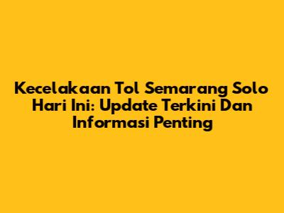 Kecelakaan Tol Semarang Solo Hari Ini: Update Terkini Dan Informasi Penting
