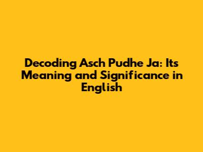 The Literal Translation: What Does 'Asch Pudhe Ja' Actually Mean?