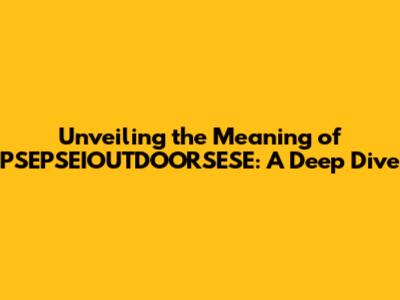 Hey guys! Ever stumbled upon something like PSEPSEIOUTDOORSESE and wondered, "What in the world does that even mean?" Well, you're not alone! It's one of those terms that pops up, especially in certain online communities or forums, and it can leave you scratching your head. This article is your guide, a deep dive into unpacking the meaning of PSEPSEIOUTDOORSESE and, more importantly, understanding how it's used. We'll explore its origins, the contexts where you might encounter it, and how it fits into the broader landscape of internet slang and jargon. So, buckle up, because we're about to decode this mystery, one layer at a time. The world of online communities and their unique language is a fascinating one, and understanding terms like PSEPSEIOUTDOORSESE is like having a secret key that unlocks a whole new level of understanding and connection within these spaces. This journey isn't just about knowing what the term means; it's about appreciating the evolving nature of language and the creativity of the people who use it. It's about being in the know, being able to participate in conversations, and avoiding the awkward feeling of being the only one who doesn't get the joke. Let's get started, shall we?