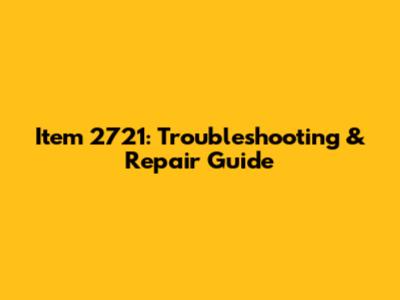 Item 2721: Troubleshooting & Repair Guide
