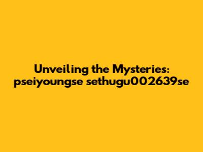 The Deep Dive: Unraveling the Layers of pseiyoungse sethugu002639se