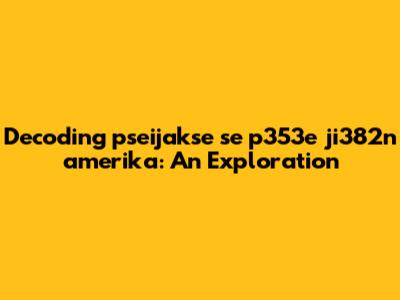 I want to highlight that this exploration is based on the idea that "pseijakse se p353e ji382n amerika" does have some meaning. If it has no meaning, then it may be hard to find a meaning or sense. To sum it up, we're diving headfirst into this linguistic mystery, and we'll use every tool we have to get closer to the truth. Let's make this an interesting journey to see what we can find.