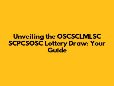Maximizing Your OSCSCLMLSC SCPCSOSC Lottery Draw Experience: Tips and Strategies