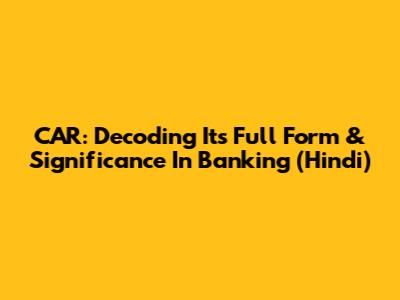 CAR: Decoding Its Full Form & Significance In Banking (Hindi)