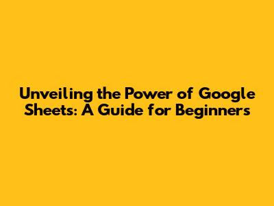 Unveiling The Power Of Google Sheets: A Guide For Beginners