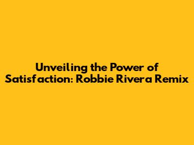 Hey music lovers! Ever felt that pure, unadulterated satisfaction that only a killer track can deliver? Well, if you're a fan of house music, or even just someone who appreciates a good beat, then you've gotta know about the Robbie Rivera Remix of Benny Benassi's "Satisfaction". This track isn't just a remix; it's an experience. It's the kind of song that instantly transforms a room, ignites a dance floor, and gets your heart pumping. This article dives deep into the sonic landscape of this iconic remix, exploring why it's remained a staple in DJ sets and a crowd favorite for so many years. We'll break down the elements that make it so electrifying, the impact it had on the electronic music scene, and why, even today, it continues to dominate playlists and capture the ears of music enthusiasts worldwide. Get ready to dive into the world of pulsating rhythms, infectious energy, and pure musical satisfaction.
