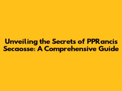 Unveiling The Secrets Of PPRancis Secaosse: A Comprehensive Guide