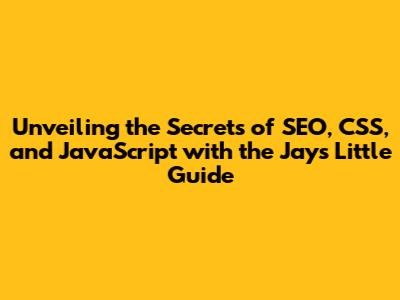 Hey everyone! Are you ready to dive into the awesome world of web development? We're going to explore some super important topics: SEO (Search Engine Optimization), CSS (Cascading Style Sheets), and JavaScript, all with a little help from the amazing Jays Little Guide. Whether you're a complete beginner or a seasoned coder, there's always something new to learn, right? This guide is designed to be your friendly companion on this journey, making complex concepts easy to understand. So, buckle up, grab your favorite beverage, and let's get started! We'll cover everything from how to make your website rank higher on Google to how to make it look super sleek and interactive. It's going to be a fun ride, and by the end of it, you'll have a solid understanding of these key technologies and how they work together to create incredible web experiences. Let's make the internet a better place, one website at a time! This guide will transform you into a web development guru. Get ready to impress your friends and colleagues with your newfound knowledge!