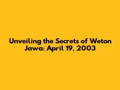 Hey guys, let's dive into the fascinating world of Weton Jawa, specifically focusing on April 19, 2003. If you're new to this, Weton Jawa is a traditional Javanese calendar system that combines the weekly cycle of seven days with the five-day market cycle (Pasaran). It's super important in Javanese culture, used for everything from predicting personality traits to planning important life events like weddings and business ventures. So, let's break down what the weton for April 19, 2003, would reveal. We'll explore the Neptu (numerical value) of the day, how it affects character, and maybe even touch on some cultural significance. Get ready, because this is going to be a fun journey into the past, with a twist of cultural insight! The Javanese calendar is way more than just a way to keep track of dates; it's a window into understanding individuals and the energies associated with their birth. In this article, we'll crack open the secrets of April 19, 2003, and see what the stars – or, well, the Javanese weton – have to say. It's like a cosmic fingerprint, giving us clues about a person's nature and potential. We'll also see how this information is actually used in the real world by Javanese people. Let's see what the weton of April 19, 2003, is all about and the kind of personality traits that might be associated with it. This is going to be so cool, trust me. We're going to use this knowledge to help us see how the Javanese people view their lives and to look into the importance of this weton in their daily life. This is not just a bunch of dates and numbers; it's a way of life, a deep connection to tradition and a unique understanding of the universe. So, buckle up, and let's go on this adventure together, exploring the intricate details and discovering the essence of this traditional system.