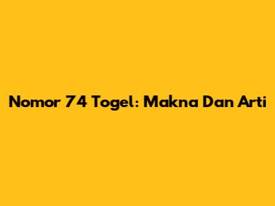 Nomor 74 Togel: Makna Dan Arti