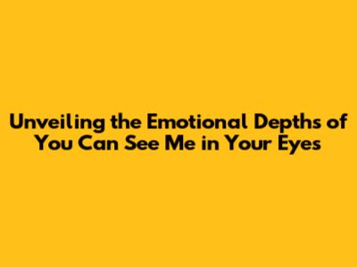 Hey music lovers! Ever gotten completely lost in a song, like it was written just for you? Well, that's the feeling we're diving into today. We're going to explore the beautiful song, "You Can See Me in Your Eyes." We'll break down the lyrics, the meaning, and the emotions it evokes. Get ready to have your heartstrings pulled and your mind blown as we analyze what makes this song so special.