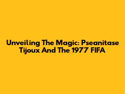 Unveiling The Magic: Pseanitase Tijoux And The 1977 FIFA