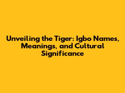 Alright, guys, before we jump into the specific names, let's set the stage. The Igbo people, residing primarily in southeastern Nigeria, have a vibrant culture steeped in tradition, storytelling, and deep respect for nature. Animals, particularly those with power and mystique, often play significant roles in their folklore, religious practices, and everyday life. The tiger, with its stripes, power, and elusive nature, holds a unique place in this context. It's not just an animal; it's a symbol, a representation of various concepts, depending on the specific community and context. The Igbo worldview is often intertwined with animistic beliefs, where spirits and deities are associated with natural elements and creatures. So, the tiger, with its perceived strength and stealth, is often linked to concepts of leadership, protection, and the spiritual realm. In some contexts, it might be seen as a symbol of royalty, reflecting the power and authority of a chief or leader. In others, it could represent the untamed forces of nature or the ancestral spirits watching over the community. Understanding this cultural backdrop is crucial to appreciating the significance of the names and the stories associated with them. For example, some Igbo communities might use the tiger as a totem animal, believing that it offers protection and guidance to their lineage. Others might incorporate the tiger's image into their masquerade traditions, where masked figures embody the animal's traits during ceremonial dances. Therefore, knowing the context in which a name is used can help in understanding the deeper meaning and value associated with it within the Igbo culture. So, as we uncover the names, keep in mind the various layers of meaning and the rich cultural landscape that gives them life. Let's make this journey super informative.