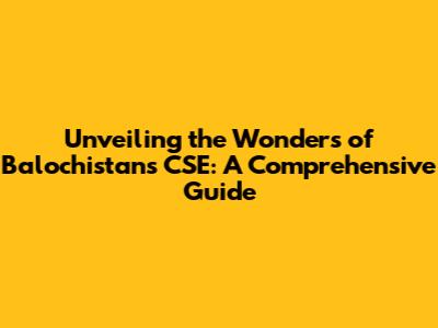 Unveiling The Wonders Of Balochistan's CSE: A Comprehensive Guide